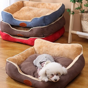 Caja plegable ecológica para perros, cama para mascotas, lona lavable extraíble y diseño semicerrado de felpa corta
