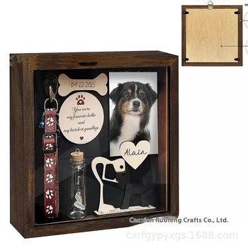 Spot Wall-Hangable Wood Pet Memorial Photo Frame Collar Souvenir Storage Shadow Box con Inkpad para Pet Memorials