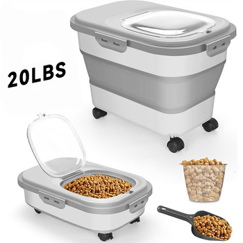 2025 scatola di stoccaggio di grande capacità nuovo barile di stoccaggio di grano pieghevole con ruota a prova di umidità Pet sigillo per la conservazione del riso del cane