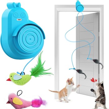 Перезаряжаемая интерактивная игрушка для котят с движущимися скрытыми перьями, активируемая касанием, из пластика
